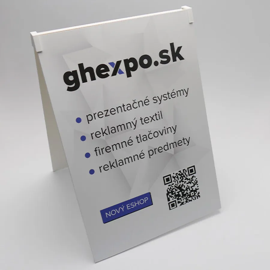 Oboustranný áčkový stojan z komatexu.