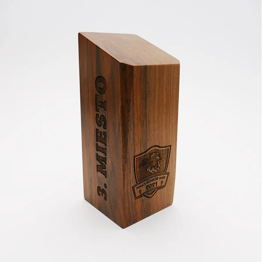 Drevená trofej je vyrobená z kvalitného masívneho dubového dreva. Vďaka, ktorému je každy jeden kus jedinečný. Dokonalé opracovanie a úprava dreva nám zabezpečuje dostatočne veľkú plochu, na gravír Vašej grafiky.