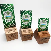 Drevená trofej je vyrobená z exotického, červeného dreva. Vďaka, ktorému je každy jeden kus jedinečný. Dokonalé opracovanie a úprava dreva nám zabezpečuje dostatočne veľkú plochu, na gravír Vašej grafiky. Trofej je kombinovaná s pexi, na ktorej sa nachádza kvalitná UV tlač.