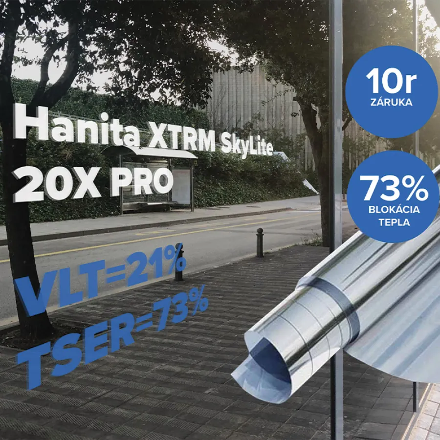 XTRM PRO je nový odolný rad exteriérových fólií , určený pre šíkmé / horizontálne aplikácie ( typicky strešné zasklievacie systémy) . Obsahuje extra ochrannú fóliu proti poškriabaniu, po aplikácií je nutné odstrániť.