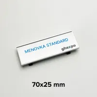 Klasická menovka je identifikačná cedulka na odev, ktorá môže obsahovať údaje, ako napríklad meno, názov firmy, logo alebo popisok produktu či výrobku. Skladá sa z prednej časti, do ktorej sa vkladá grafika (výtlačok) a zadnej časti špendlíku, ideálny systém pre tých ktorý chcú klasicku alebo lacnejšie riešenie.