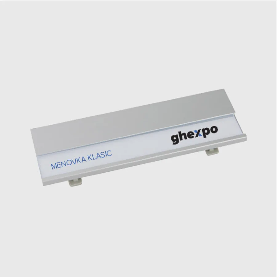 Klasická menovka je identifikačná cedulka na odev, ktorá môže obsahovať údaje, ako napríklad meno, názov firmy, logo alebo popisok produktu či výrobku. Skladá sa z prednej časti, do ktorej sa vkladá grafika (výtlačok) a zadnej časti špendlíku, ideálny systém pre tých ktorý chcú klasicku alebo lacnejšie riešenie.