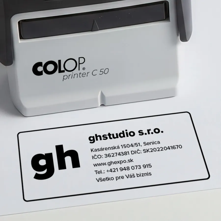 Razítko je Vaše takzvaná vizitka. Při jakémkoli obchodním kontaktu Vám stačí jeden otisk a všechny potřebné údaje o Vás a Vaší firmě předáte dál, aniž byste je museli ručně vyplňovat. Ideální pro grafiku obsahující 7 řádků.