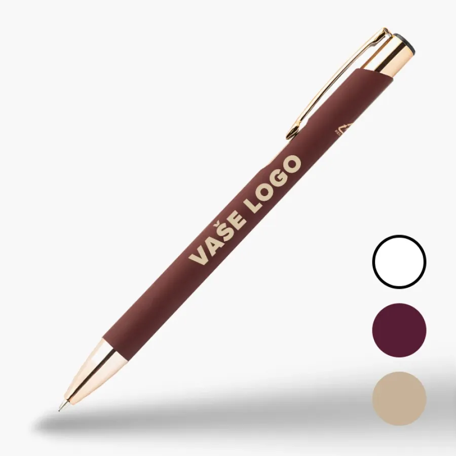Guličkové pero z recyklovaného hliníka s pogumovaným povrchom a detailami z ružového zlata. Pero má špeciálnu povrchovú úpravu ideálnu pre gravírovanie.
