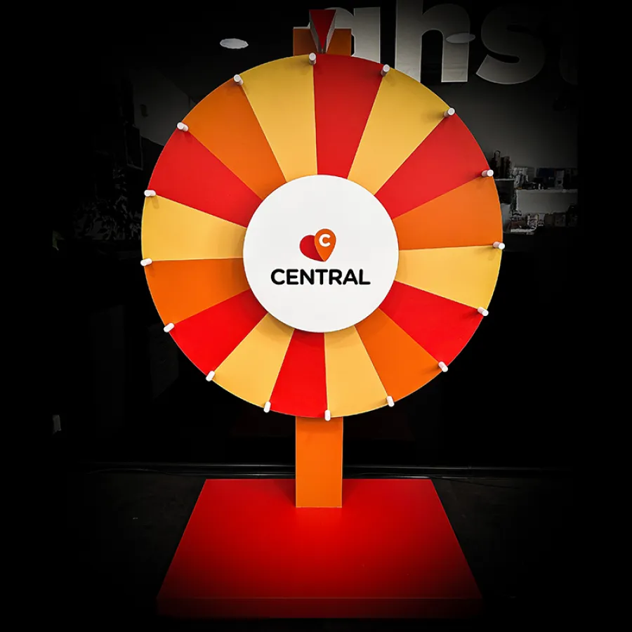 Atraktivní prvek na každou akci! Vyrobíme ti kolo štěstí přesně podle tvých představ – barvy, design i velikost přizpůsobíme tvé značce. Ideální na promo akce, soutěže, eventy či firemní prezentace.