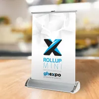 Najmenší Roll Up na trhu vo formáte A4, alebo A3. Ideálny na pracovný stôl, alebo prezentačný pult. Pri preprave je možné plachtu zrolovať do mechanizmu ako pri klasickom rollupe.