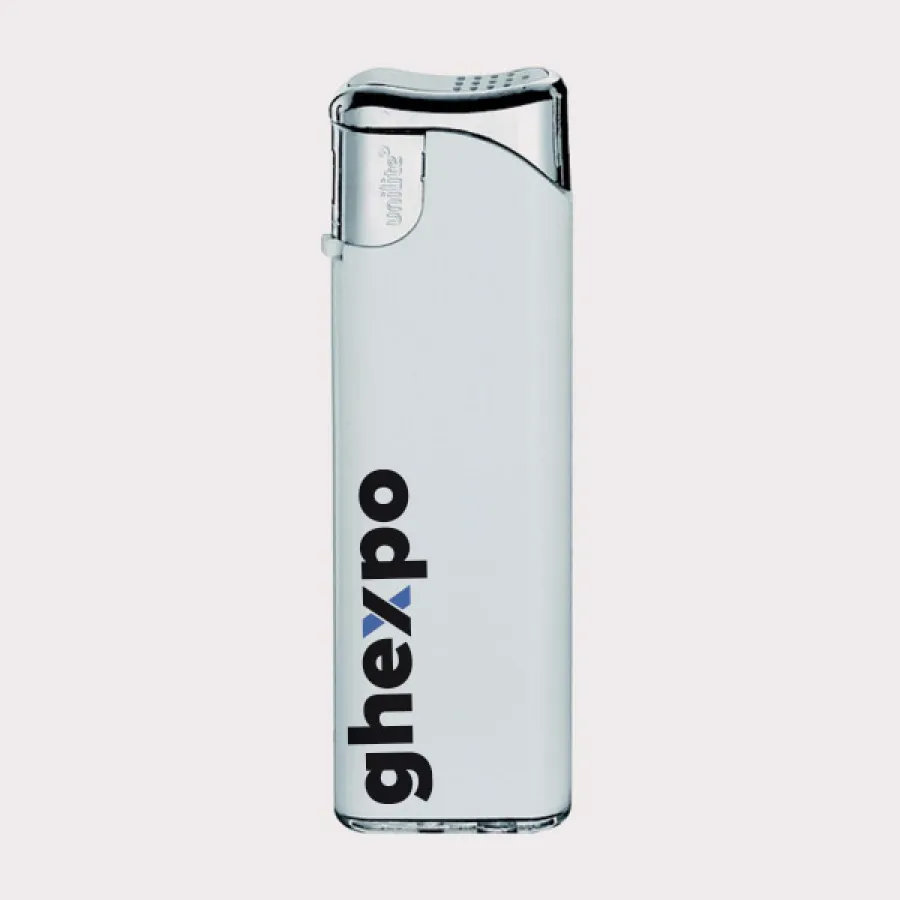Plastový ,plniteľný zapaľovač s vlastnou potlačou.